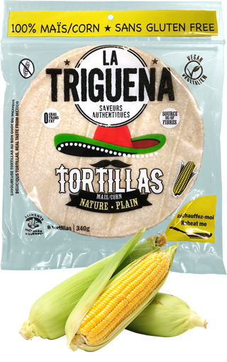 All our corn tortillas are made from 100% corn flour, they are vegan, certified Gluten-Free and made in Canada.